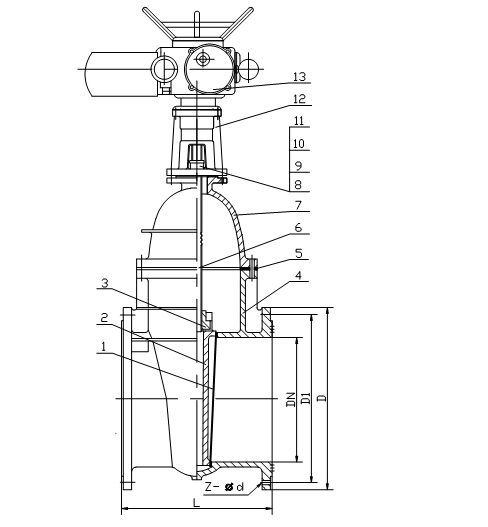 Z945X-10/16Q電動彈性座封閘閥結(jié)構(gòu)圖