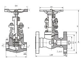J41W-16P不銹鋼截止閥主要外形和連接尺寸