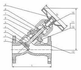 Y型波紋管截止閥的結(jié)構(gòu)圖: