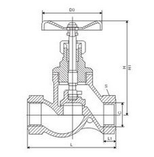 J11H-16C絲口截止閥主要外形尺寸、連接尺寸及重量