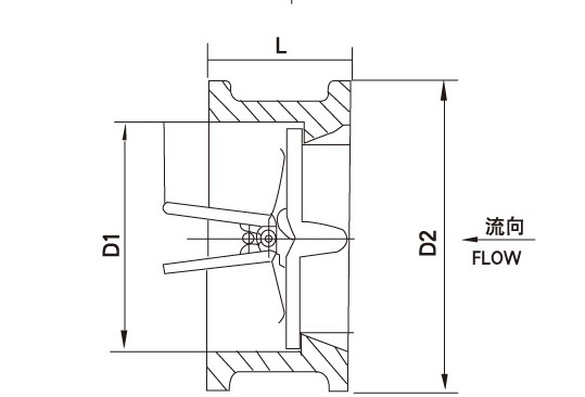 HH77X-10/16Q蝶型止回閥由閥體、閥瓣、閥桿及彈簧等零件組成,采用對(duì)夾連接。由于閥瓣的關(guān)閉行程短,并且有彈簧加載,可顯著減少水錘現(xiàn)象。