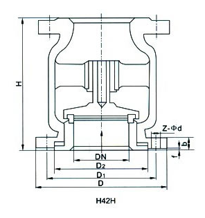 H42H-16/25C鑄鋼立式止回閥結(jié)構(gòu)圖