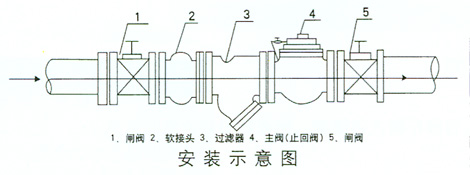當(dāng)停止供水時(shí),下游的介質(zhì)就會(huì)逆流回來(lái),而一小部分的水流會(huì)流向主閥的控制室,但由于單向閥的作用,介質(zhì)只能進(jìn)入控制室卻不能流出,同時(shí)就會(huì)引起主閥控制室升壓從而可緩慢的關(guān)閉主閥。
