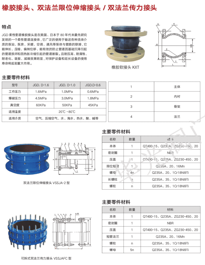 橡膠接頭、雙法蘭限位伸縮接頭/雙法蘭傳力接頭